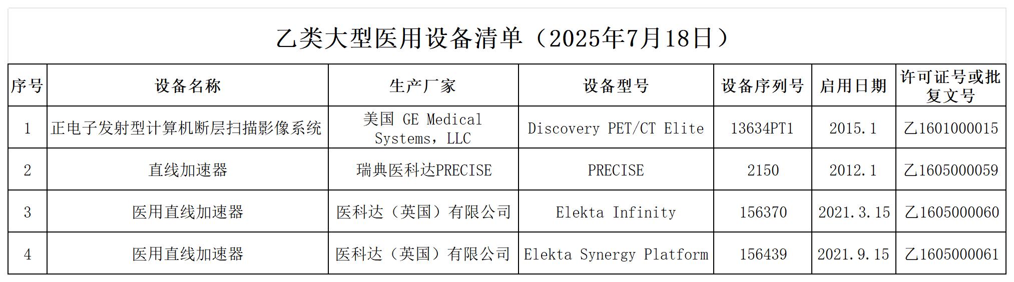 乙類大型醫(yī)用設(shè)備清單(2025年7月18日)