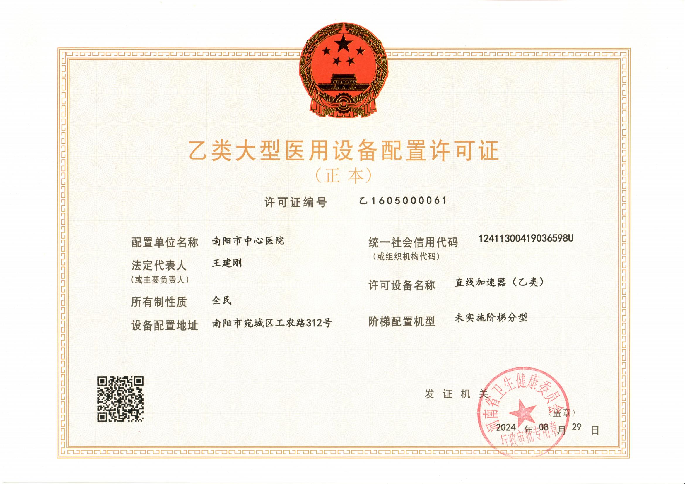 乙類大型醫(yī)用設(shè)備配置許可證(正本)直線加速器(乙類)(許可證編號:乙1605000061)2024.08.29